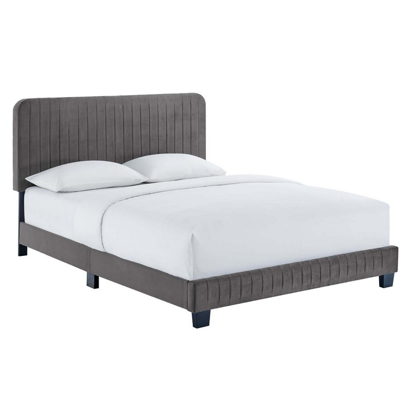Modway Celine Channel Tufted Performance Velvet Twin Platform Bed in Gray
