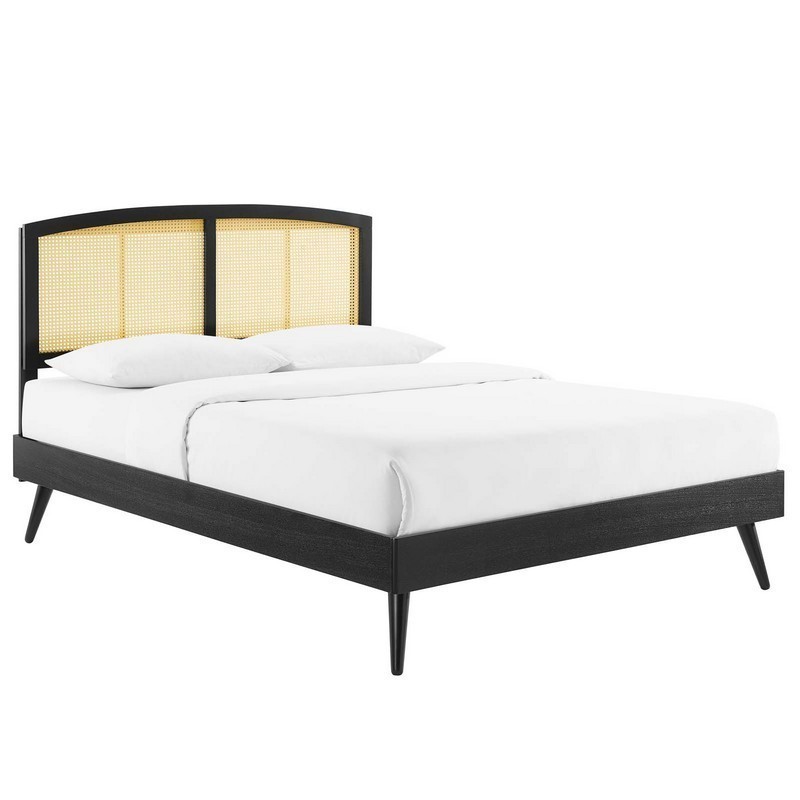 MODWAY MOD-6376-BLK SIERRA 84 INCH CANE AND WOOD QUEEN PLATFORM BED WITH SPLAYED LEGS, BLACK