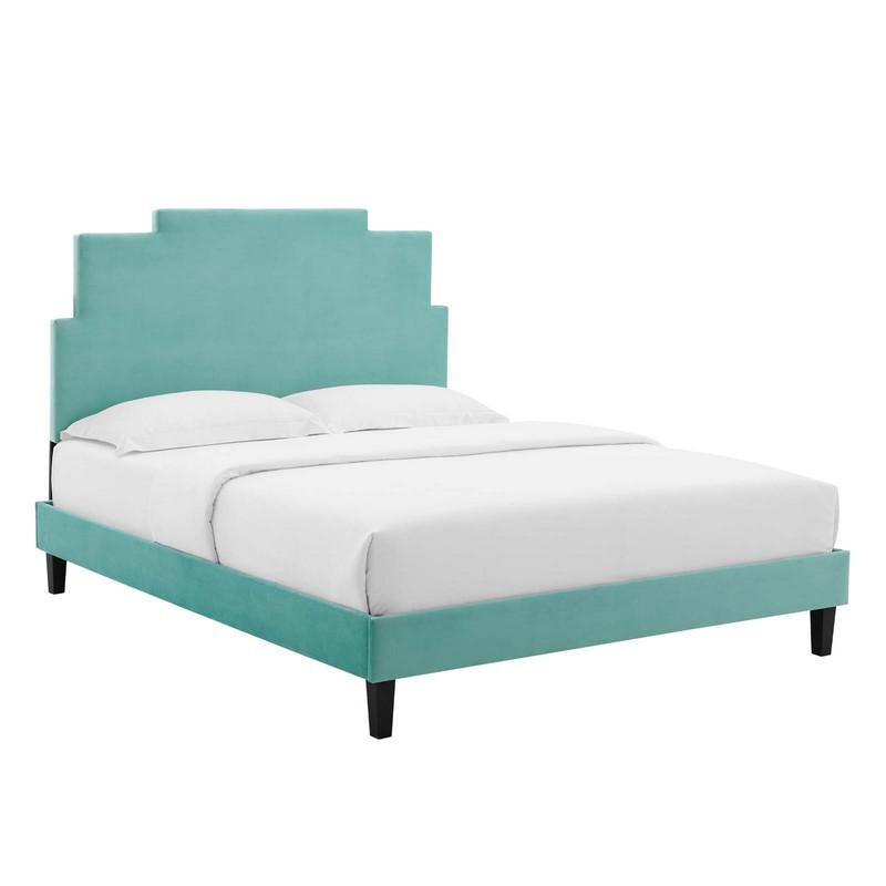 MODWAY MOD-6705-MIN LINDSEY 87 INCH PERFORMANCE VELVET QUEEN PLATFORM BED, MINT