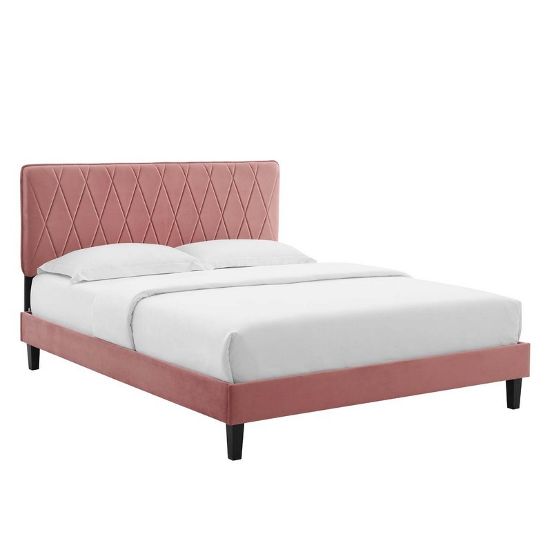 Modway Phillipa Performance Velvet King Platform Bed in Dusty Rose with Black Wood Legs