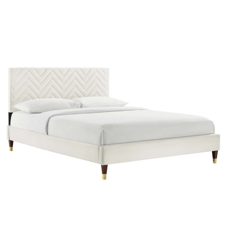 MODWAY MOD-7009-WHI LEAH 79 INCH CHEVRON TUFTED PERFORMANCE VELVET KING PLATFORM BED, WHITE
