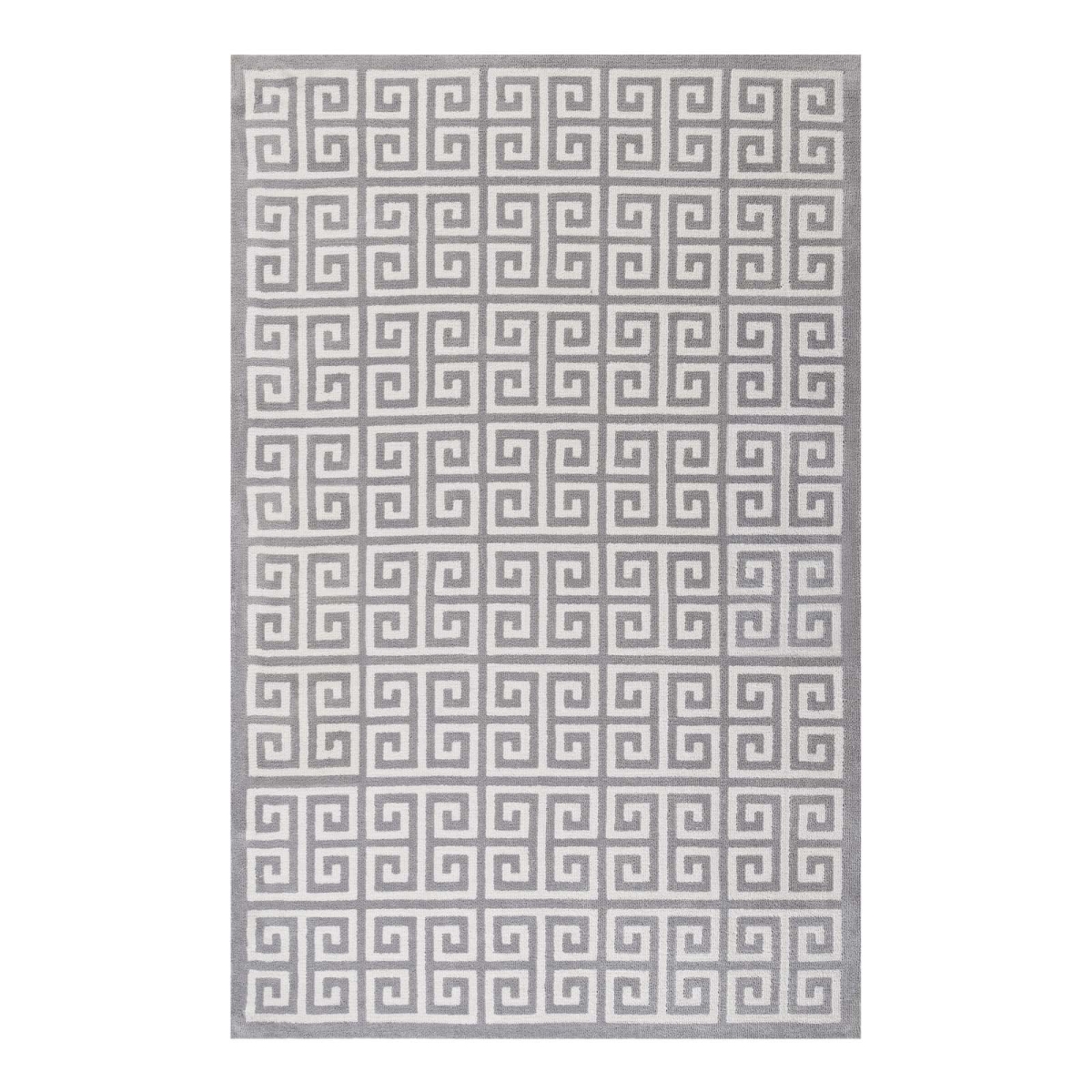 Freydis Collection R-1013B-58 Greek Key 5x8 Area Rug in White and Light Grey Color