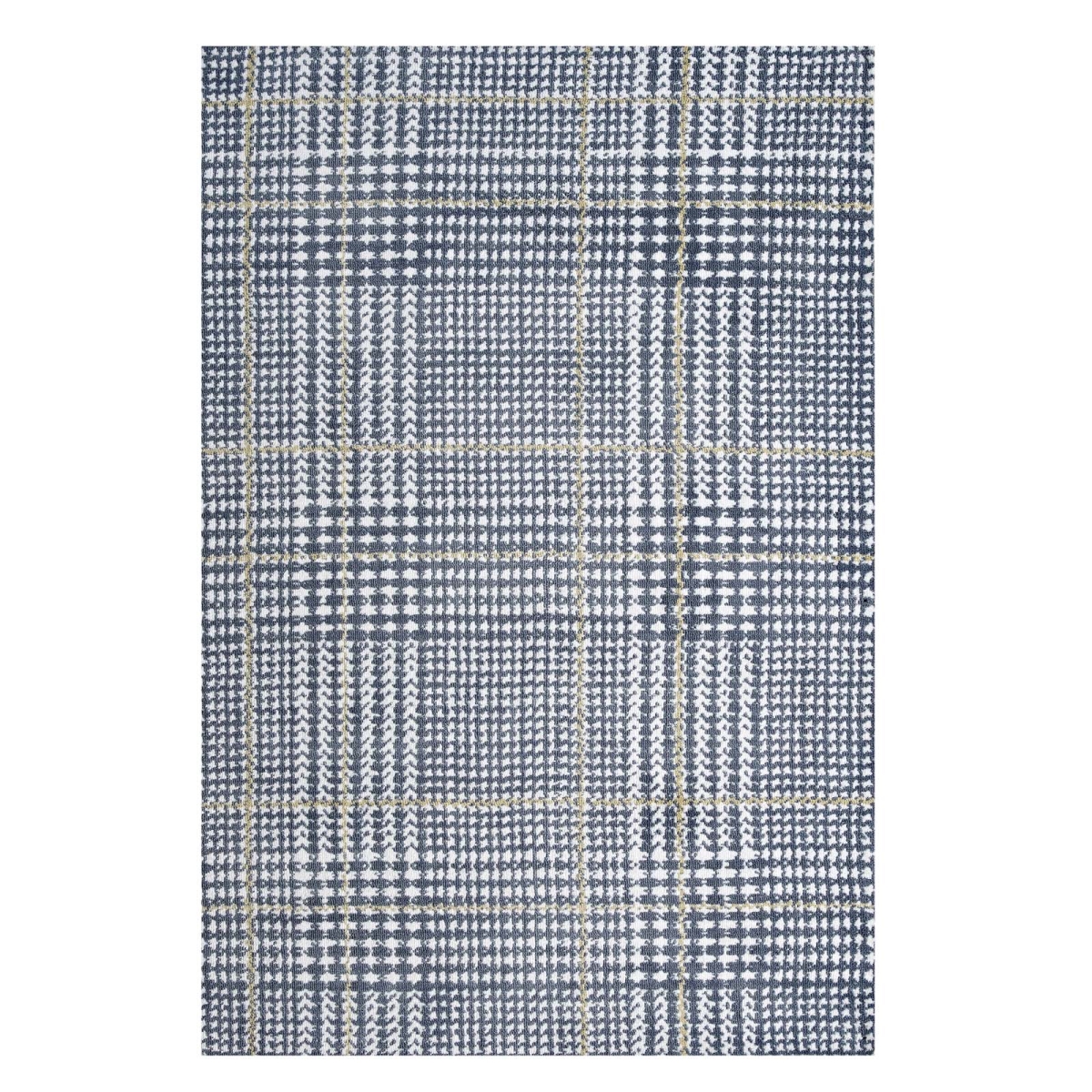 Kaja Collection R-1024C-58 Abstract Plaid 5x8 Area Rug in Ivory, Cadet Blue and Citron Color