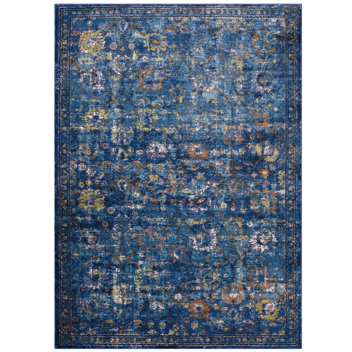 Modway R-1091D-810 Minu Distressed Floral Lattice Area Rug, 8' x 10', Dark Blue, Yellow and Orange
