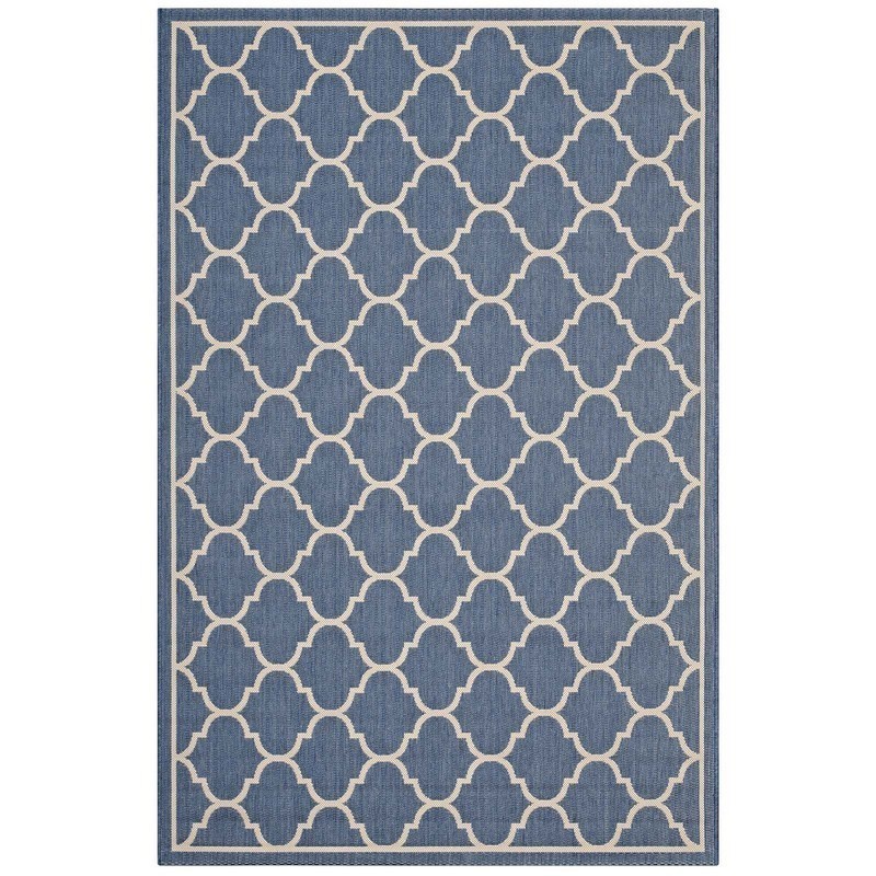 MODWAY R-1137A-46 AVENA MOROCCAN QUATREFOIL TRELLIS 4 X 6 INDOOR AND OUTDOOR AREA RUG, BLUE AND BEIGE