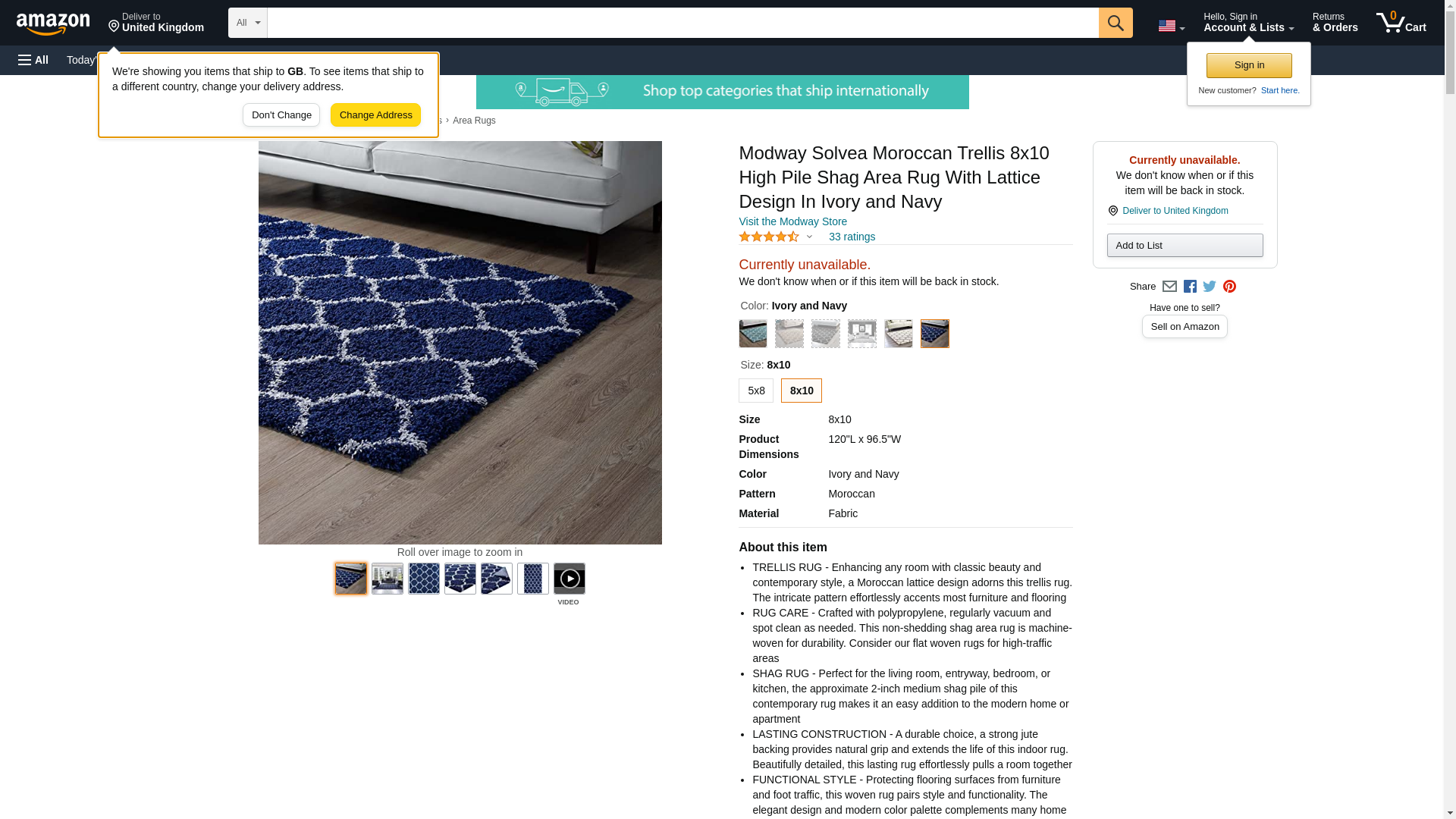 Solvea Collection R-1143A-810 Moroccan Trellis 8x10 Shag Area Rug in Navy and Ivory Color