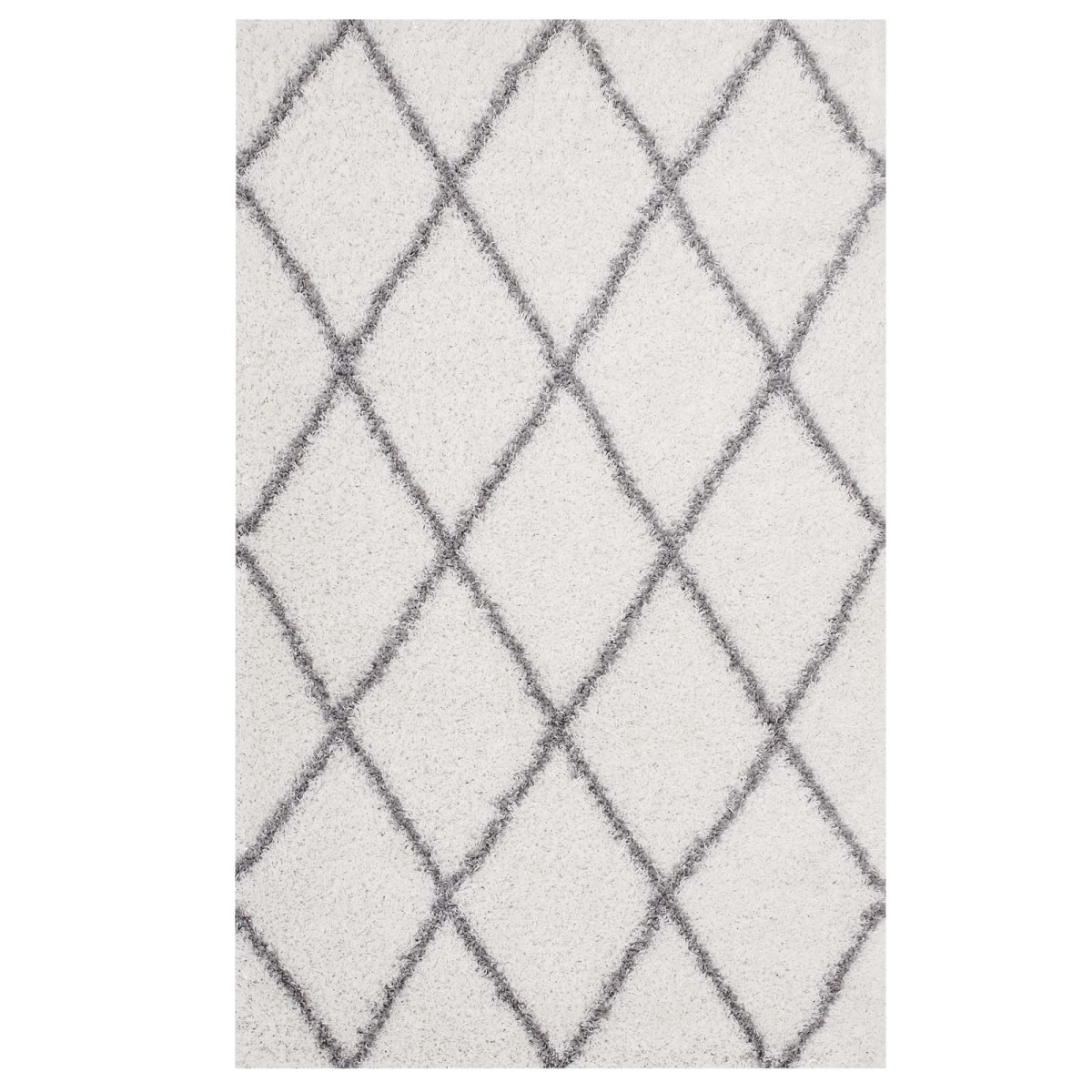 Toryn Collection R-1144C-58 Diamond Lattice 5x8 Shag Area Rug in Ivory and Grey Color