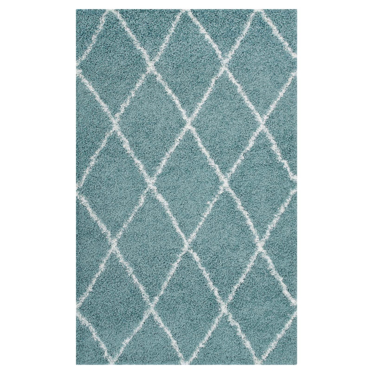 Toryn Collection R-1144E-810 Diamond Lattice 8x10 Shag Area Rug in Aqua Blue and Ivory Color