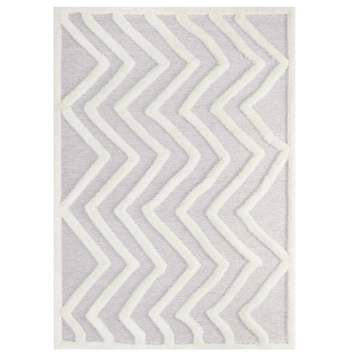 Pathway Collection R-1156A-58 5' x 8' Shag Area Rug with High-Low Texture, Stain Resistant, Abstract Chevron Design, Soft High Density Polyester and Chenille Material in Ivory and Light Grey Color