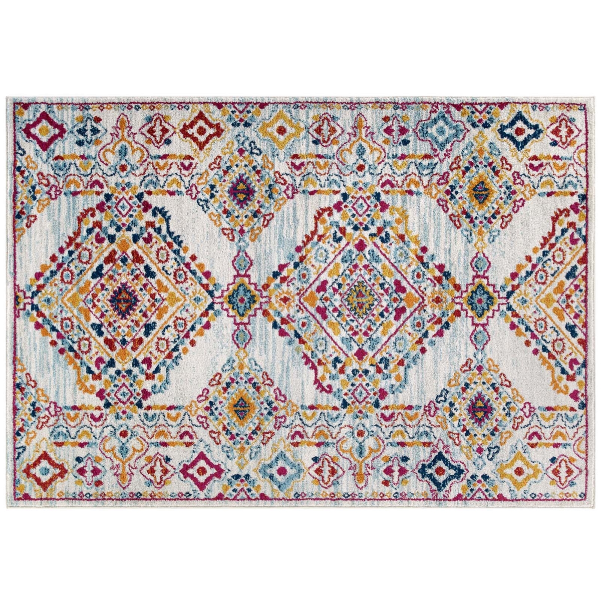 Entourage Collection R-1169A-810 Khalida Distressed Floral Lattice 8x10 Area Rug in Ivory, Blue, Orange, Yellow, Red Color