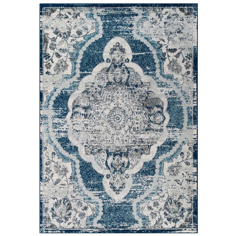 Entourage Collection R-1175B-810 Malia Distressed Vintage Floral Persian Medallion 8x10 Area Rug in Ivory and Blue Color