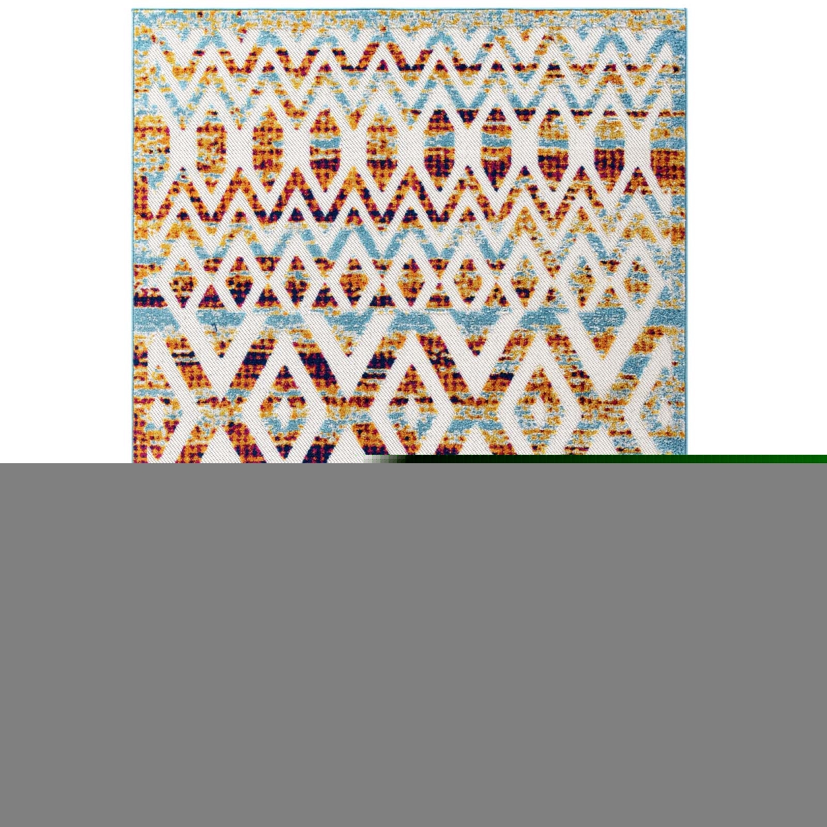 Reflect Collection R-1177B-58 Tamako Diamond and Chevron Moroccan Trellis 5x8 Indoor / Outdoor Area Rug in Multicolored Color