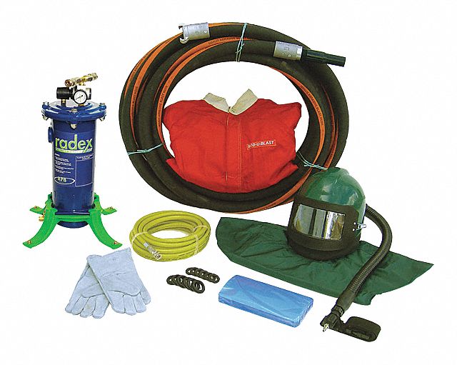 ACCESSORY KIT E, MIN 185 CFM AT 80 PSI, BLAST HELMET, LEATHER GLOVES, BREATHING FILTER, 1 IN HOSE