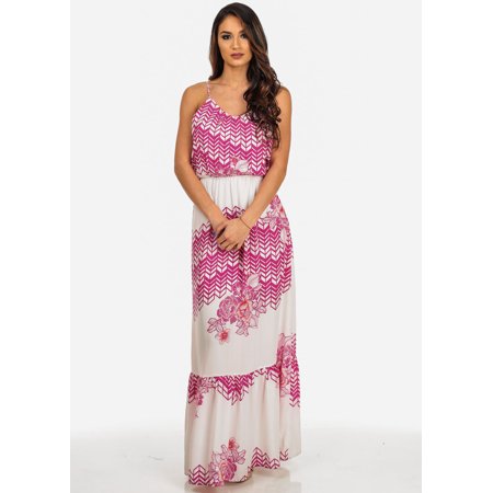 <ul><li>Sizes are JUNIOR SIZES. If in doubt, order one size up</li><li>A-line silhouette maxi dress with scoop neckline, non-adjustable spaghetti straps, and elastic waist. Fully lined, no closures. Made from 100% Polyester. Hand wash cold, flat dry. Length from high </li></ul>