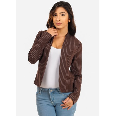 <ul><li>Sizes are JUNIOR SIZES. If in doubt, order one size up</li><li>Cute and stylish striped blazer in an open-front design with a long sleeves, fake pockets and allover stripes. Partially lined. Made from 55% linen and 45% cotton. Length from underarm down approx</li></ul>