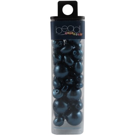 Mode International Square Tube Glass Beads, 2 oz, Pearl Navy Blue Mix