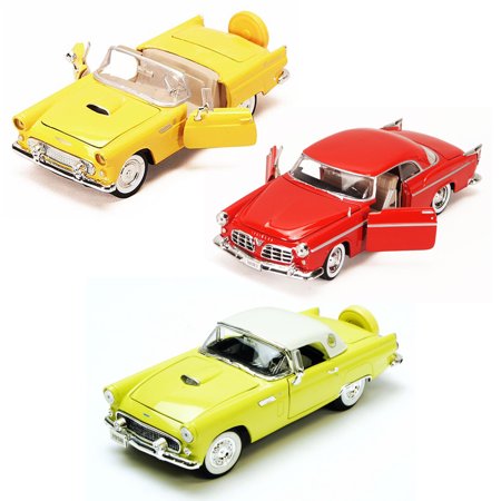 <b>This Three Car Diecast Package Includes: </b> <ul> <li>1956 Ford Thunderbird Convertible w/ Removable Bonnet, Yellow - Phoenix 18508 - 1/24 Scale Diecast Model Toy Car</li> <li>1955 Chrysler C300, Red - Motormax 73302 - 1/24 scale Diecast Model Toy Car </li> <li>1956 Ford Thunderbird Convertible, Yellow - Motormax 73215 - 1/24 scale Diecast Model Toy Car</li> </ul> <br /> <br />18508-PHX-YELLOW,73302-MMT-RED,73215-MMT-YELLOW