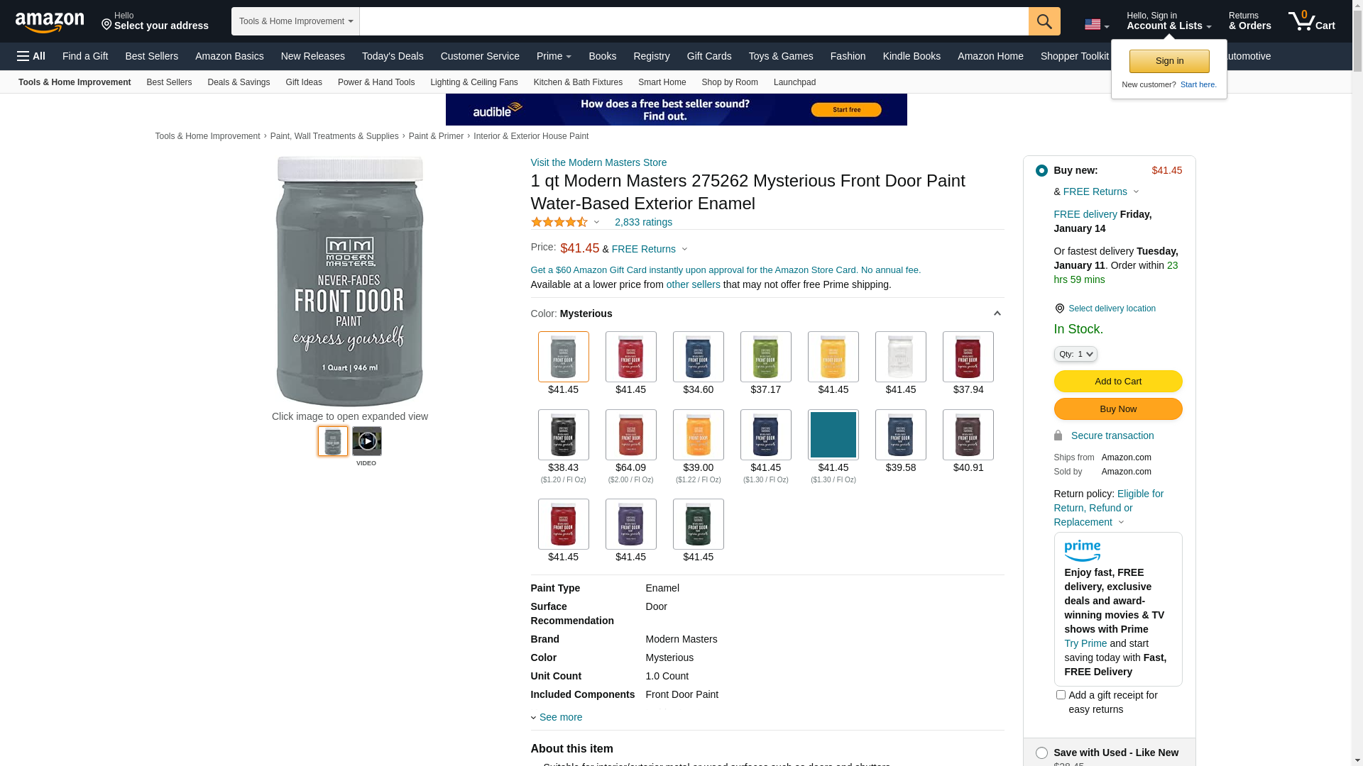 Modern Masters 1 qt. Satin Mysterious Express Yourself Front Door Paint is a high-quality, durable paint that allows you to change the look of your whole house in just one day. Formulated with never-fade technology, the color withstands the elements to retain a rich and vibrant look as time passes. Quick-dry formula allows easy completion of projects with no mess or heavy lifting. Simply leave your door on its hinges, paint and close the same day with no mess.