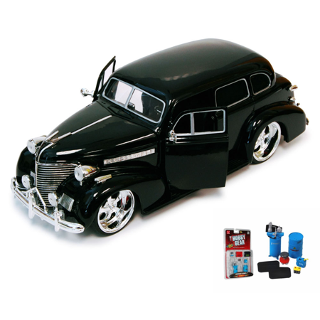 <b>2-piece Diecast Package Includes: </b> <ul> <li>1939 Chevy Master Deluxe, Black - Jada Toys Bigtime Kustoms 90224 - 1/24 scale Diecast Model Toy Car</li> <li>Garage Gear Set #2 - Phoenix 16055 - 1/24 Scale Diecast Car Accessory </li> </ul> <br /> <br />90224CB-JADA-BLACK,16055-PHX,,,,