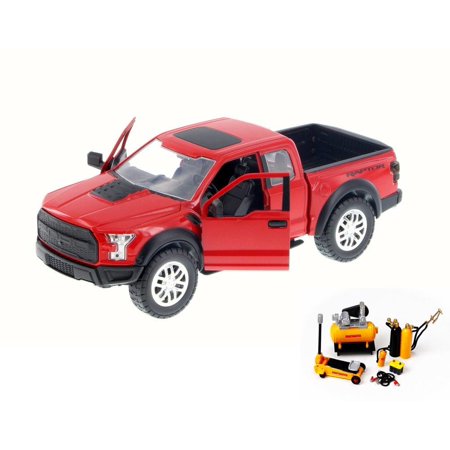 <b>2-piece Diecast Package Includes: </b> <ul> <li>2017 Ford F-150 Raptor Pickup, Red - Jada 98586DP1 - 1/24 Scale Diecast Model Toy Car</li> <li>Mechanic Tool Set #2 - Phoenix Hobby Gear 16059 - 1/24 Scale Diecast Car Accessory </li> </ul> <br /> <br />98586DP1-JADA-RED,16059B,,,,