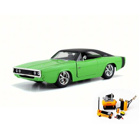 <b>2-piece Diecast Package Includes: </b> <ul> <li>1970 Dodge Charger RT, Green - Jada 97593A - 1/24 Scale Diecast Model Toy Car</li> <li>Mechanic Tool Set #2 - Phoenix Hobby Gear 16059 - 1/24 Scale Diecast Car Accessory </li> </ul> <br /> <br />97593A-JADA-GREEN,16059B,,,,