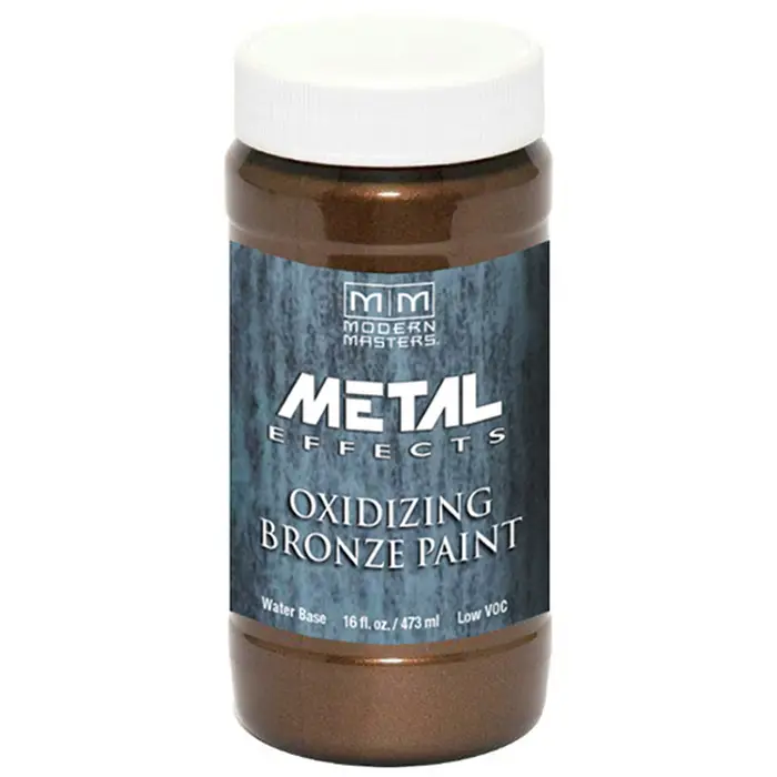 Our water base Oxidizing Bronze Paint contains real metal particles and will tarnish naturally over time and when exposed to the elements. Use the Blue Patina Aging Solution to speed up the oxidation process to create a beautiful, authentic Blue Patina finish on any paintable surface.