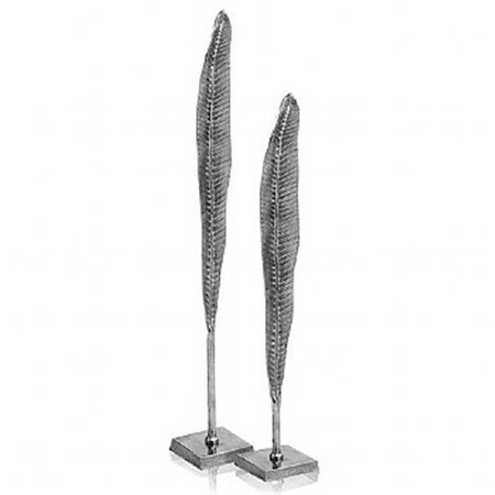 Modern Day Accents Set of 2 Tallo Thin Leaves, Silver, Aluminum, Leaf on Base, Tabletop, Centerpiece, Home, Office, Tall: 4.5" x 4.5" x 32.5, Short: 4.5" x 4.5" x 28"