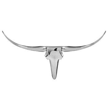 Modern Day Accents XL Tauro Xtra Long Horn Bust, Aluminum, Silver, Modern, Living Room, Home, Office, Décor, Glam, Wall Art, Bedroom, Animal, Accents, Wildlife, 47” x 4” x 26