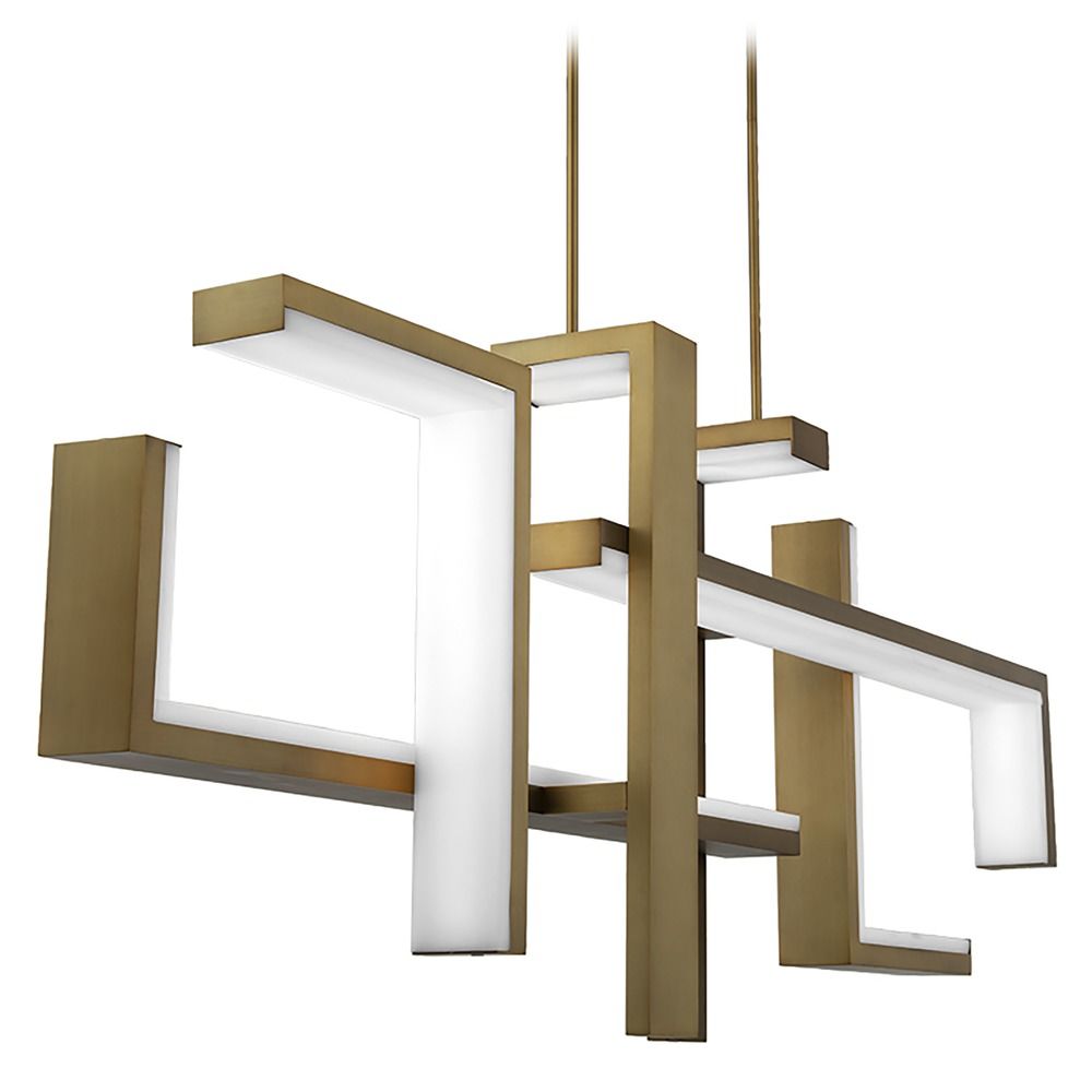 Modern Forms-PD-80056-AB-Collection: Jackal, Material: Aluminum, Width/Diameter: 7.75", Height: 22", Length: 56", Lamp: 1-39.5w bulb(s), UL: Suitable for damp locations, - Desc: the intriguing display. Beautiful in aged brass or black finishes. Energy-efficient integrated LED's provide a long-lasting maintenance-free bright and even illumination. Aluminum construction with silicone diffuser. Six 12in and two 6in down rods included (additional down rods available for purchase) Universal Input Voltage Driver (120V-240V-277V) inside fixture, can fit on a pancake junction box. Smooth and continuous dimming with an electronic low voltage (ELV), TRIAC, or 0-10V dimmer. High Powered Replaceable LED Module CRI: 90, Rated Hours: 50,000, Color Temp: 3000K. Standards: ETL & cETL UL 1598 listed for damp locations. Warranty: 5 Years Functional/2 Years FinishColor Temperature: 3000 / Lumens: 1972 / CRI: 90 / Rated Lifetime Hours: 50000 / Beam Angle: Flood / Dimable: Yes. Warranty: 5 Years Functional/2 Years Fi-Jackal-39.5W 1 LED Chandelier in Mid-Century Modern Style-7.75 Inches Wide by 22 Inches High Aged Brass Finish