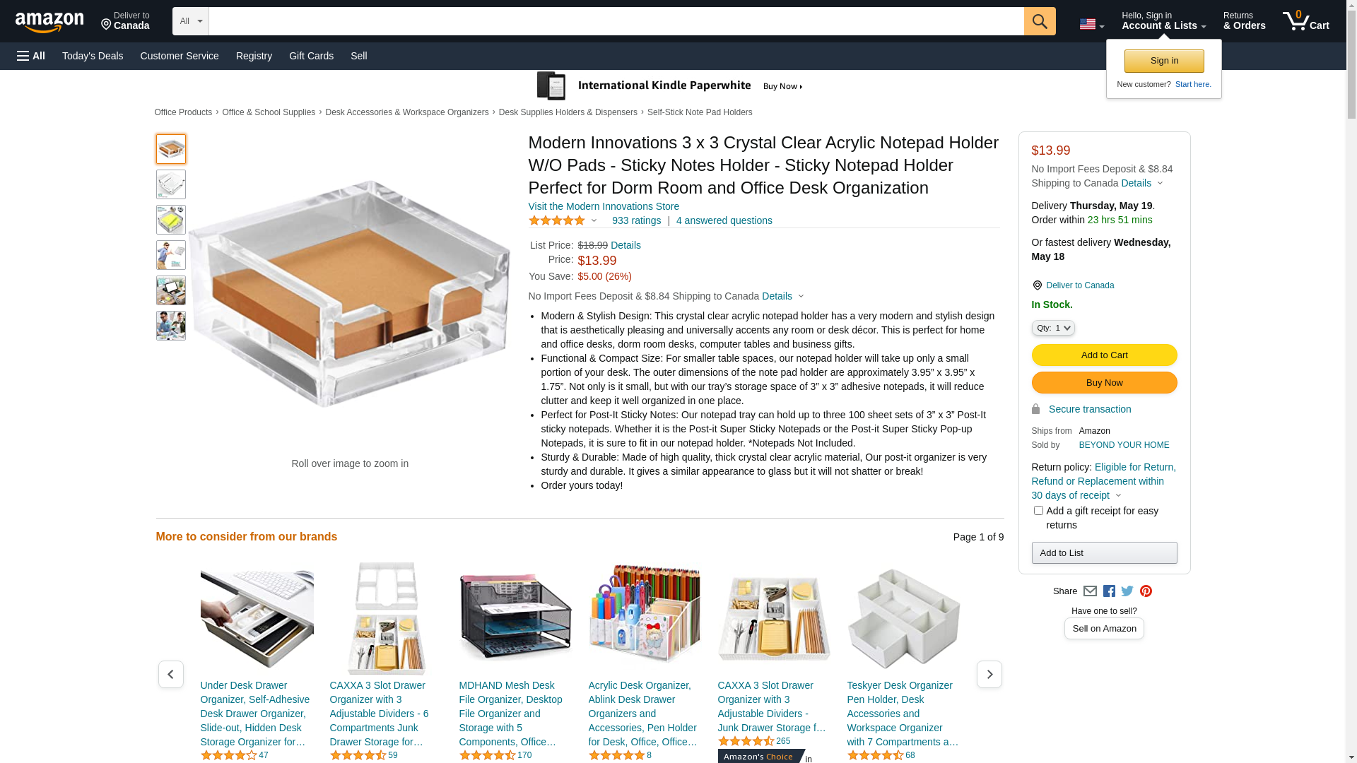 Modern Innovations 3 x 3 Crystal Clear Acrylic Notepad Holder W/O Pads - Sticky Notes Holder - Sticky Notepad Holder Perfect for Dorm Room and Office Desk Organization - Smoke Home & Garden