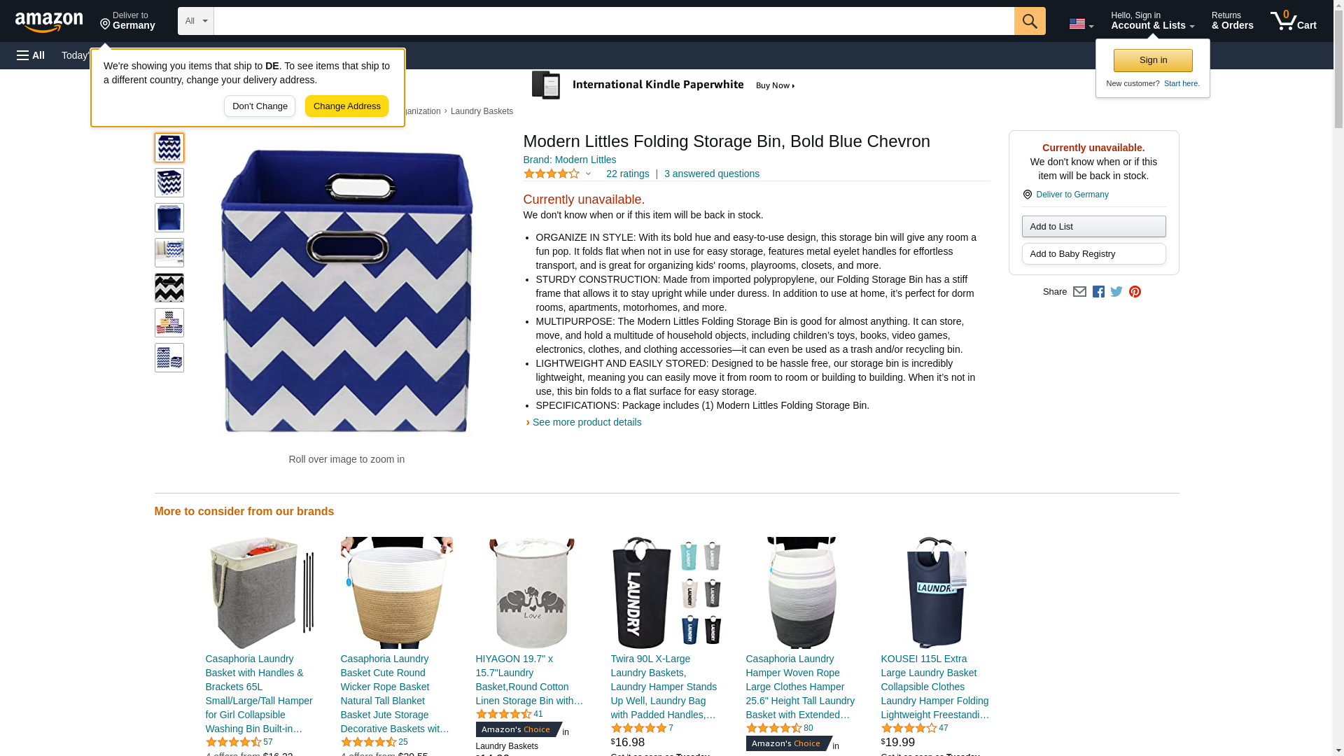 Modern Littles Folding Storage Bin, Bold Blue Chevron