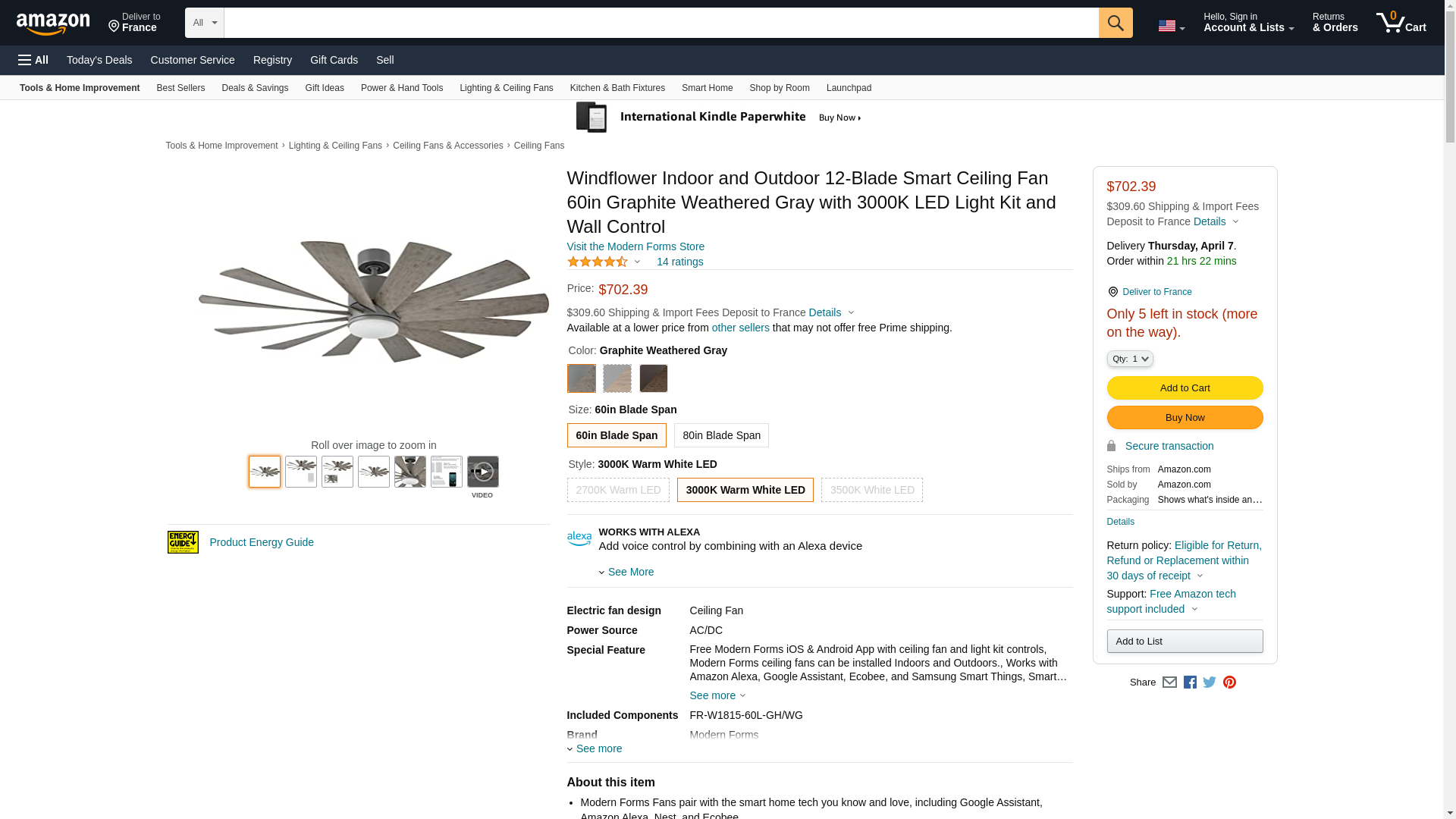 Windflower Indoor/Outdoor 12-Blade Smart Ceiling Fan 60in Matte Black with 2700K LED Light Kit and Wall Control works with iOS/Android, Alexa, Google Assistant, Samsung SmartThings, and Ecobee