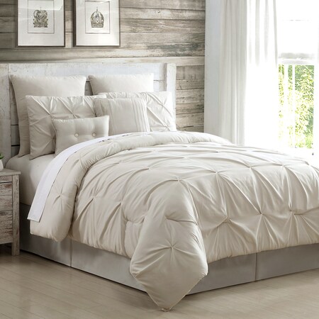 Update your bedroom with this soft and attractive eight-piece comforter set. The polyester filling gives just the right fluffiness to this comforter set while the bar tacking details give a more formal finished look. This set includes embroidery-detailed euro shams, decorative pillows, pillow shams, and a tailored bed skirt, not to mention an oversized, overfilled comforter wrapped in 100-percent polyester.