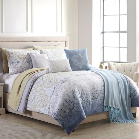- SET INCLUDES: (1) comforter, (2) shams, (3) deco pillows, (1) throw, (1) coverlet, (2) quilted shams
