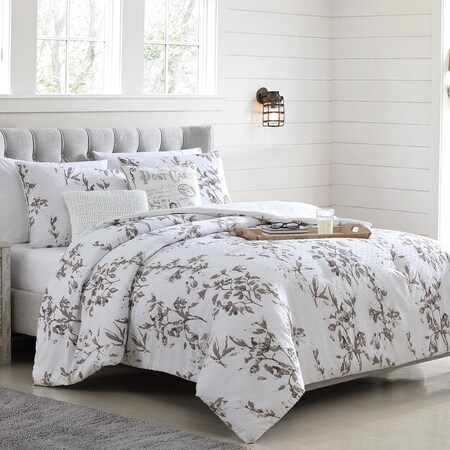 Modern Threads 5 Piece Jacquard Comforter Set Laurel, Queen, White/Taupe