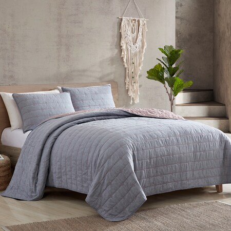 Modern Threads 3-Piece Everly Embroidered Quilt Set, King, Grey/Rose