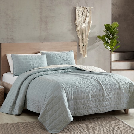 Modern Threads 3-Piece Everly Embroidered Quilt Set, King, Sage/Cream