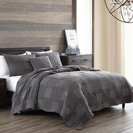Modern Threads Ian 4-Piece Stone-Washed Quilted Coverlet Set with Matching Shams, Decorative Pillows Charcoal King