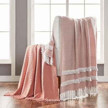 Modern Threads 2 Pack 100% Cotton 50x60" Throw Dion Coral Crme