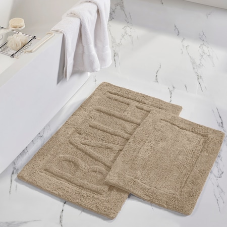 Modern Threads 2-Pack Soft Absorbent Plush 100% Cotton Bath mat Embossed with Bath Khaki