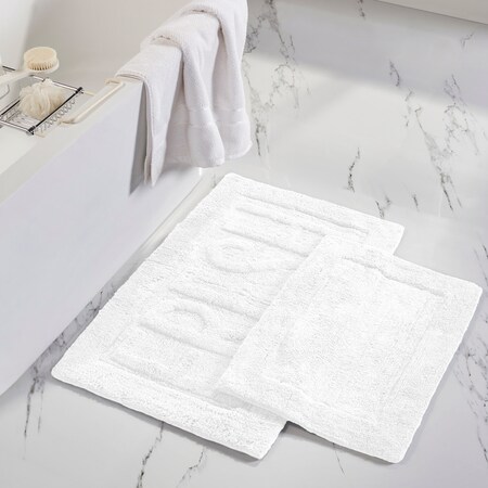 Modern Threads 2-Pack Soft Absorbent Plush 100% Cotton Bath mat Embossed with Fresh White