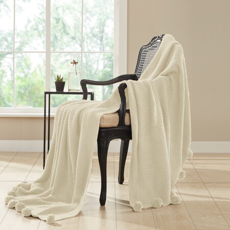 Modern Threads Knitted Bed Sofa Throw Poms, White
