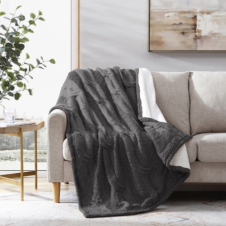 Modern Threads Cable Knit/Sherpa Throw Gray