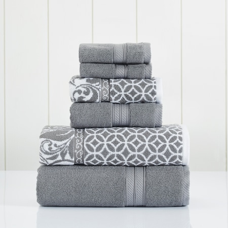 Modern Threads Trefoil Filigree 6-Piece Reversible Yarn Dyed Jacquard Towel Set - Bath Towels, Hand Towels, & Washcloths - Super Absorbent & Quick Dry - 100% Combed Cotton