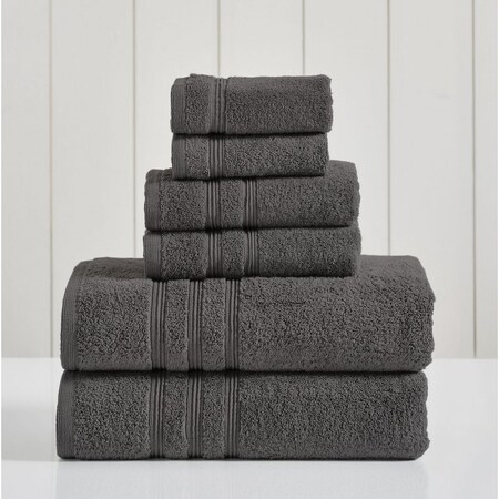 Modern Threads 100% Pima Cotton 6 Piece Set, 2 Bath Towels, 2 Hand Towels, 2 Washcloths, Coal