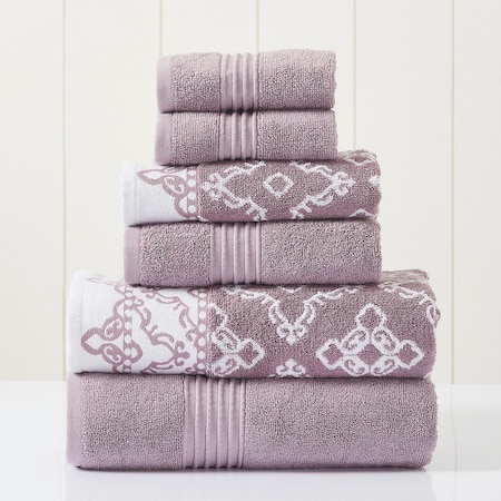 Modern Threads 6-Piece Yarn Dyed Jacquard/Solid Towel Set Charlize Orchid