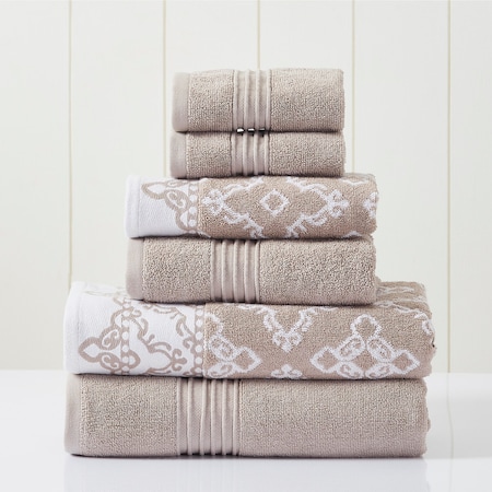 Modern Threads 6 Piece Set, 2 Bath Towels, 2 Hand Towels, 2 Washcloths Yarn Dyed Jacquard/Solid Towel Set Charlize Fawn