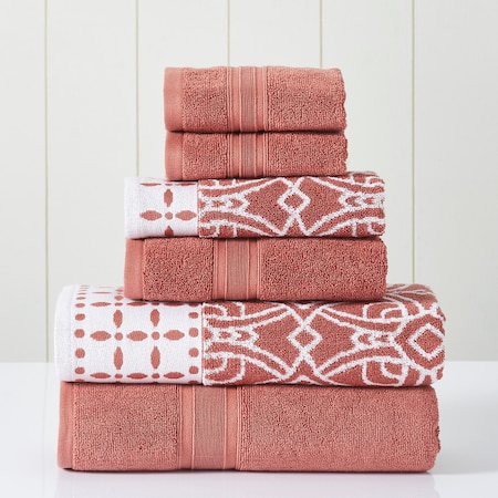 Modern Threads 6-Piece Yarn Dyed Jacquard/Solid Towel Set Monroe Clay, Standard
