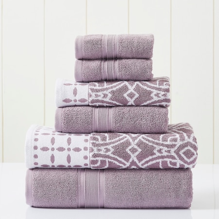 Modern Threads 6-Piece Yarn Dyed Jacquard/Solid Towel Set Monroe Orchid, Standard