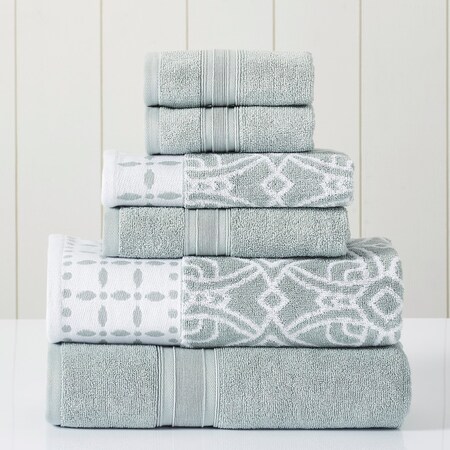 Modern Threads 6 Piece Set, 2 Bath Towels, 2 Hand Towels, 2 Washcloths Yarn Dyed Jacquard/Solid Towel Set Monroe Dark Sage